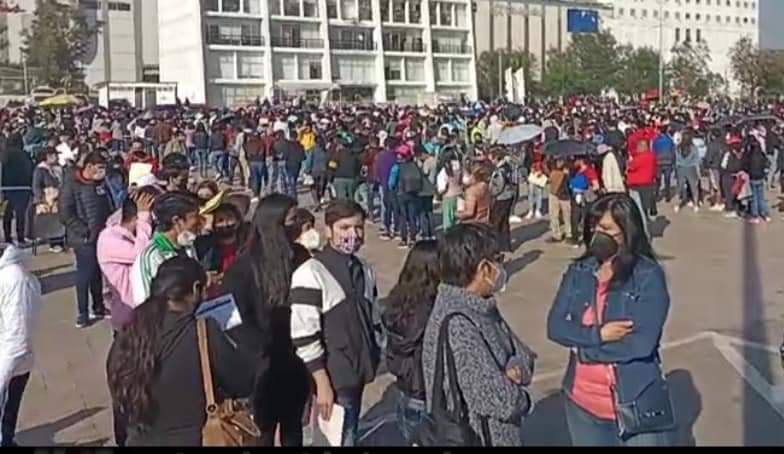 La fila en las inmediaciones del Palacio Municipal es interminable.