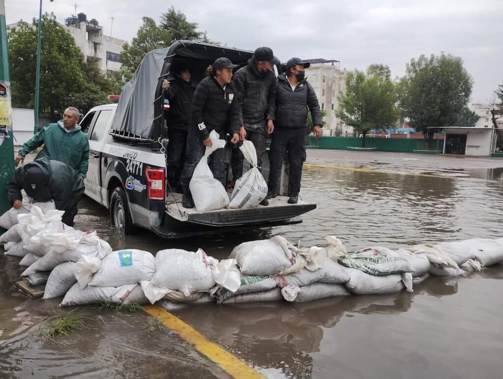 Asimismo, se colocaron costales en la avenida 13 de septiembre y la calle Castillo de Chapultepec en la Unidad Habitacional Niños Héroes, a fin de desviar el flujo de agua.