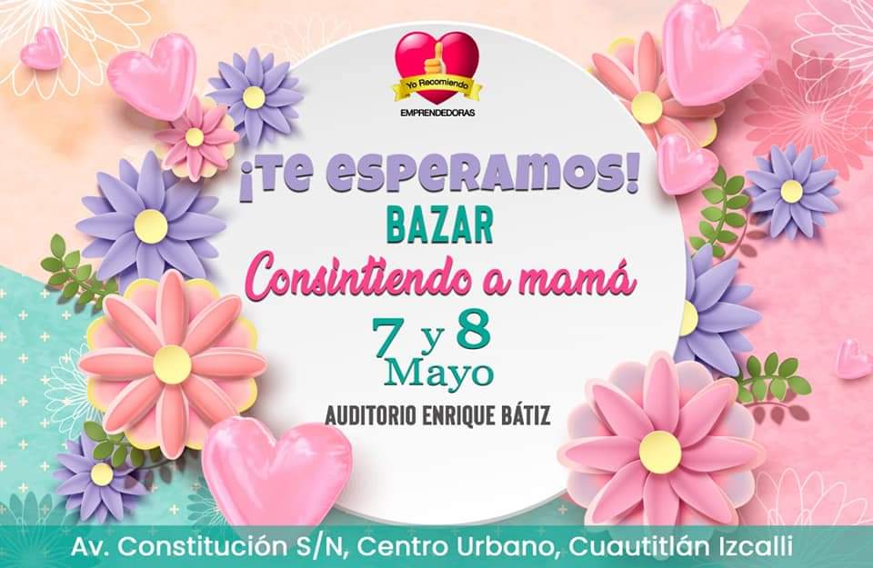 El Bazar, se instalará en el centro de la ciudad, frente al palacio municipal de Cuautitlán Izcalli, en el auditorio Enrique Bátiz, los días 7 y 8 de mayo.