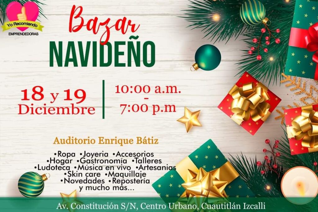 El Bazar Navideño, se instalará en el centro de la ciudad, frente al palacio municipal de Cuautitlán Izcalli, en el auditorio Enrique Bátiz, los días 18 y 19 de diciembre, en donde se esperan que estén alrededor de 60 expositoras y vendedoras de diversos productos.