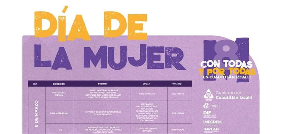 El gobierno municipal que encabeza Karla Fiesco García, anunció su programa de actividades para mañana martes 8 de marzo.