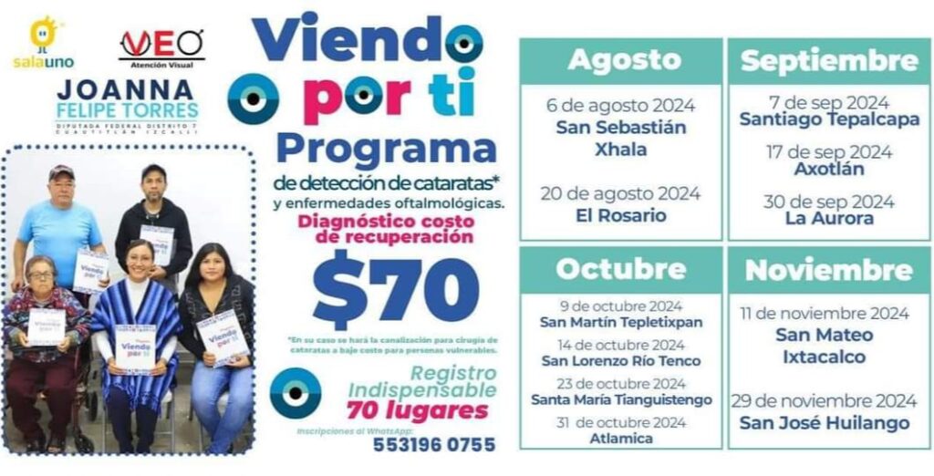 Les informamos que realizaremos una gira de Jornadas de Salud Oftalmológica con nuestro programa de detección, y en su caso, operación de cataratas para personas vulnerables, “Viendo por ti”.