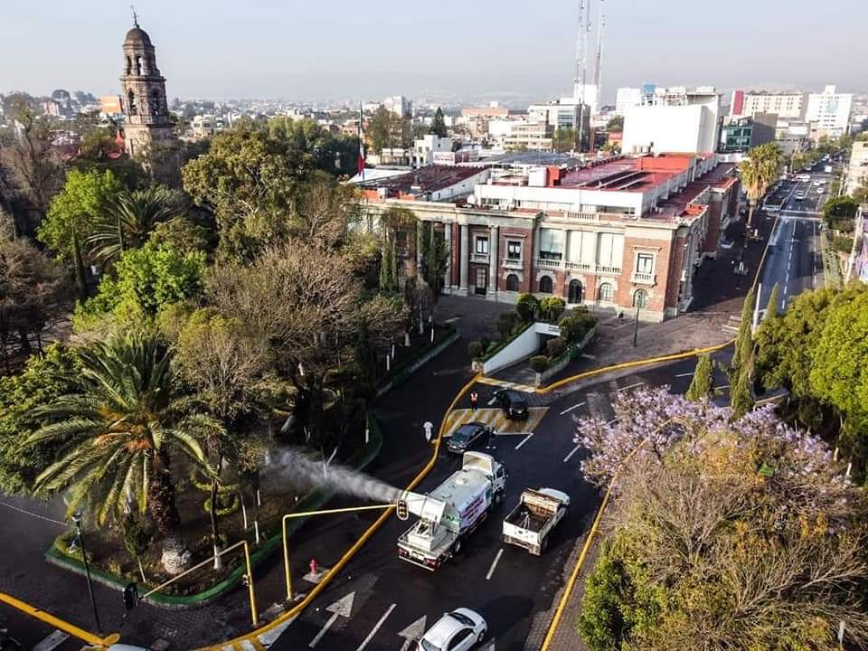 Ante el incremento de los casos de Covid-19 y con el objetivo de combatir su propagación, el gobierno municipal de Tlalnepantla de Baz realizó, esta mañana, la desinfección del palacio municipal y sus alrededores.