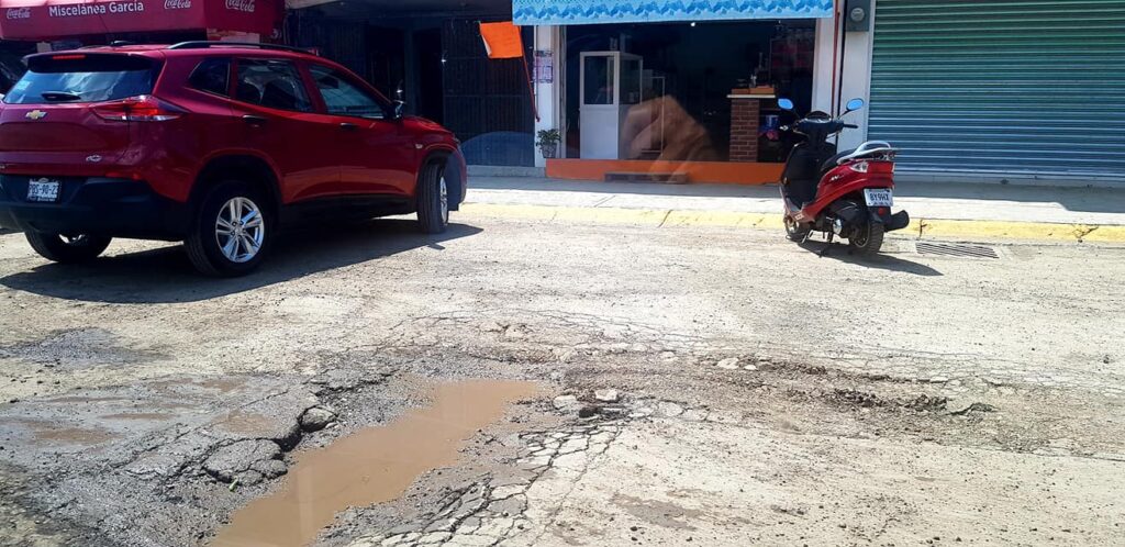 Desde hace una semanas, nuevamente los baches comenzaron a surgir y en varias zonas, el pavimento se está empezando a abrir; el problema más evidente, en estos momentos, se encuentra en la entrada principal, en su incorporación de la avenida Constitución.