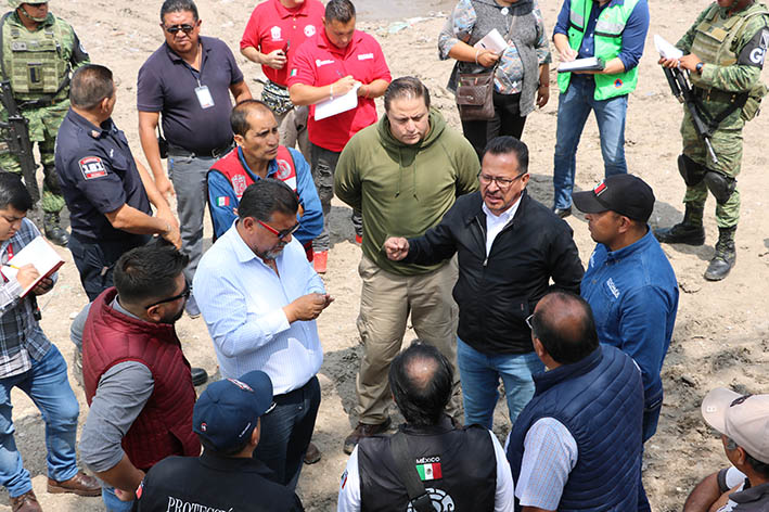 Las autoridades de los tres órdenes de gobierno caminaron y recorrieron la ruta de la avenida Quetzal, prácticamente hasta llegar a la Unidad Habitacional Niños Héroes; estuvieron también en un fraccionamiento “Mariposas”, y checaron un problema de “taponamiento” que hay con algunos terrenos vecinos, que impiden el libre flujo del cause natural del agua, causándoles problemas.