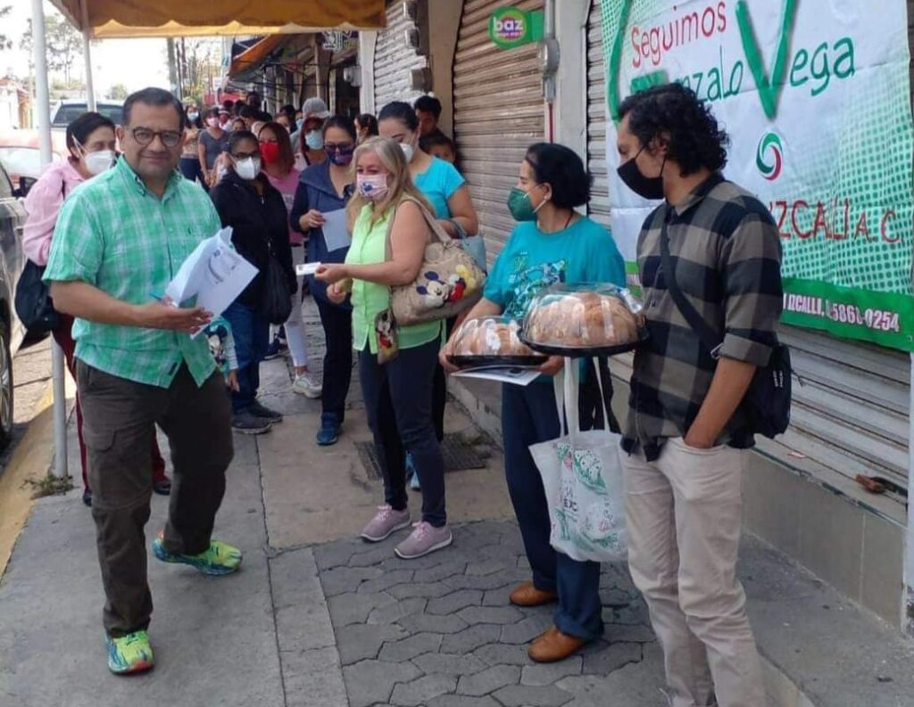 Los seleccionados, recibieron su pan en las oficinas de la asociación que encabeza, que se ubican en la colonia Cumbria; esta actividad se llevó a cabo en el marco de las festividades por el Día de Muertos.