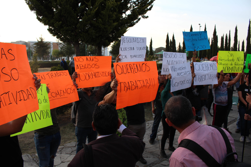 Israel Cabello, representante de varios de los afectados, denunció que el área de Normatividad no está actuando conforme a derecho. “Nosotros lo que pedimos es que hagan todo conforme a derecho, que nos regularicen; se supone que es un gobierno entrante, que nos apoyen en el aspecto de regularizarnos; si a muchos nos falta un documento, danos el término de ley para hacerlo, si no lo tengo, entonces sí, múltame y no violen nuestras garantías”.