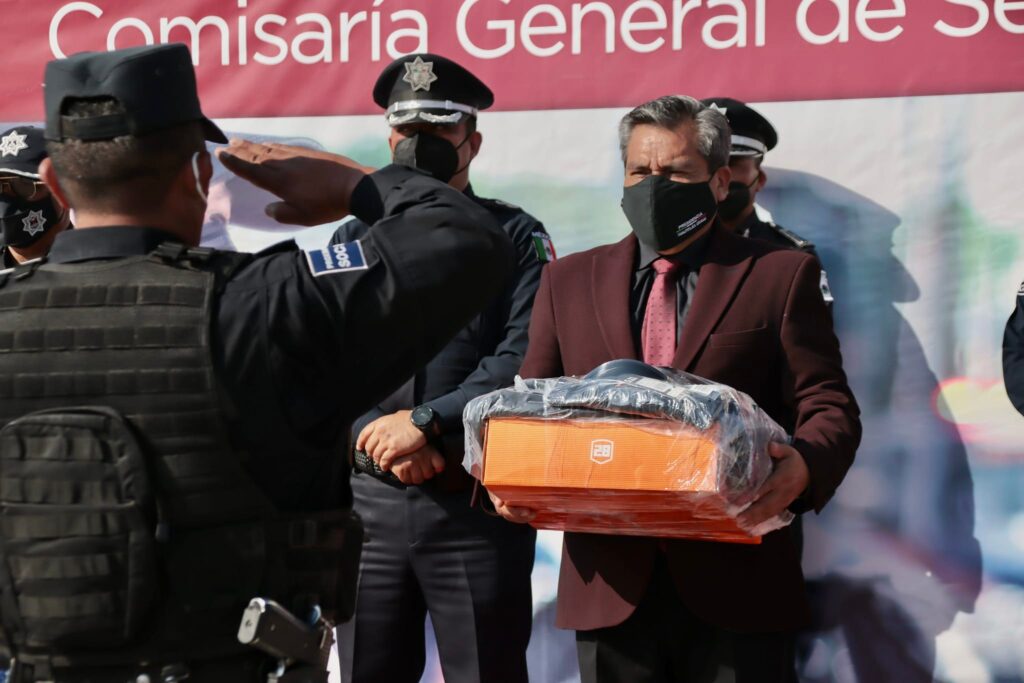 Los uniformes para los elementos de Seguridad Pública comprenden gorra, camisola, pantalón táctico, chamarra y botas; mientras que para los de Tránsito es gorra, camisa, pantalón pie tierra, chamarra y zapato de choclo. En el caso de los chalecos antibalas, son para los técnicos operativos, que entran a operaciones especiales de más riesgo.