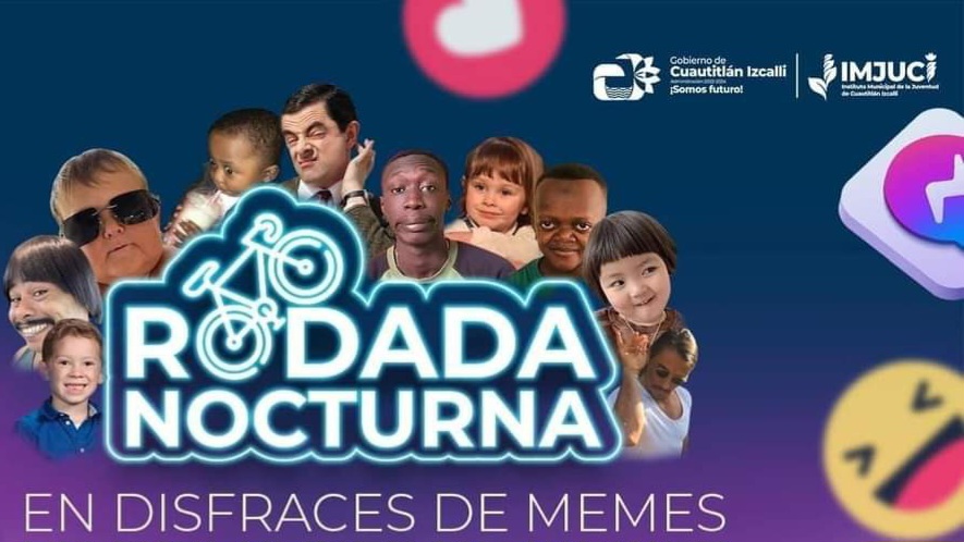 El Gobierno Municipal que encabeza la maestra Karla Leticia Fiesco García a través del Instituto Municipal de la Juventud de Cuautitlán Izcalli (IMJUCI) te invita a que asistas a la “Rodada Nocturna en Disfraces de Memes” este jueves 2 de marzo a las 18:00 horas.