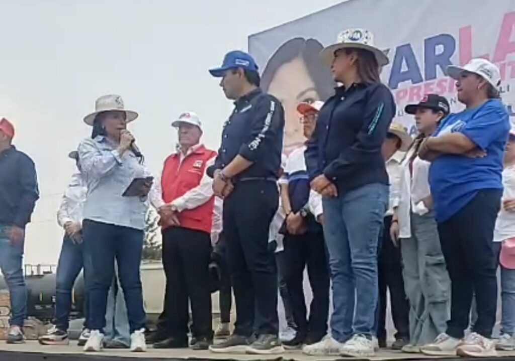 La acompaña Enrique Vargas Del V. candidato a senador por el PRI, PAN, PRD y Nueva Alianza.