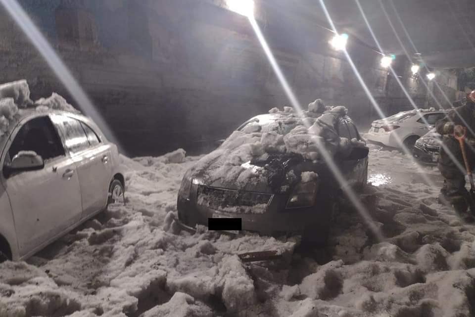 Elementos de protección civil y bomberos de Tlalnepantla rescataron a tres personas y un cuerpo sin vida del desnivel entre Mario Colín y Avenida de los Maestros, donde se formó un bloque de hielo de 80 centímetros por el granizo que se acumuló debido a la lluvia atípica registrada la tarde de este lunes.