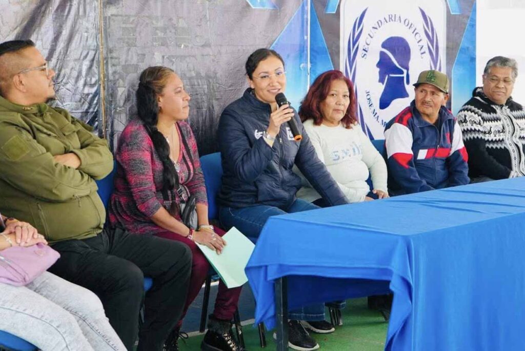 En materia educativa, la diputada local visitó la escuela secundaria José María Morelos y Pavón, ubicada en Bosques de Morelos, donde convivió con padres de familia y la comunidad estudiantil.