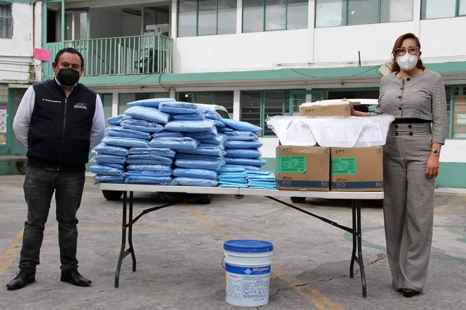 La diputada local entregó insumos médicos como batas, caretas, cubrebocas quirúrgicos, equipo para hemodiálisis, diálisis, y pintura para las instalaciones de la Jurisdicción Sanitaria de #Atizapán.