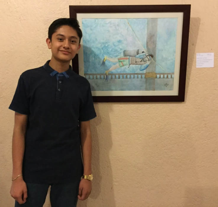 Entre los expositores está Christian Huerta Santín, de 15 años de edad, quien desde los 12, ha mostrado un talento nato para el dibujo y que, ahora, ha sido respaldado por sus padres Fernando Huerta y Claudia Santín, para que lo desarrolle tomando clases.