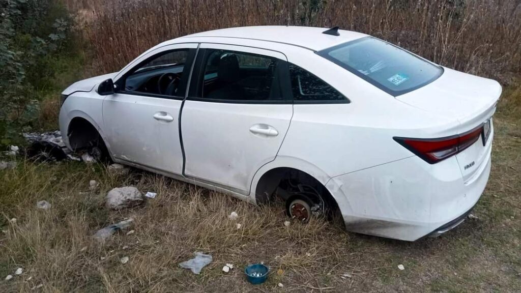 Se reportó un vehículo abandonado de marca Chevrolet tipo aveo color blanco en el Parque “San Jorge” en dicha comunidad. Los policías arribaron al lugar y visualizaron que el carro ya no contaba con las cuatro llantas y se verificó que cuenta con reporte de robo.