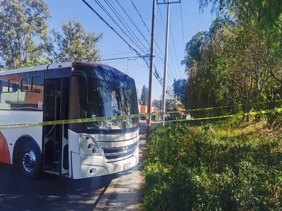 Elementos de Seguridad Pública acordonaron la zona en donde el conductor de un autobús de pasajeros perdió la vida.