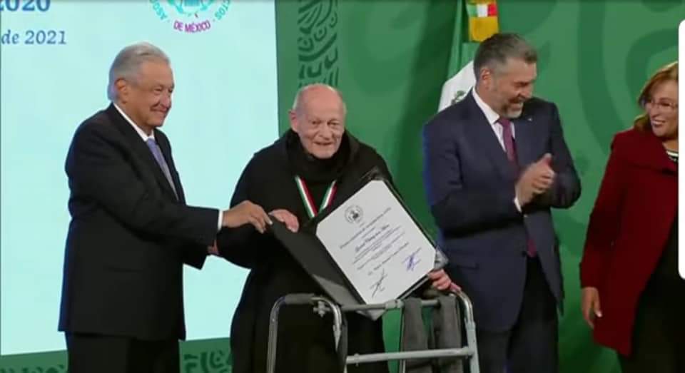 La ceremonia en donde se le distinguió se llevó a cabo en la Conferencia Mañanera del presidente Andrés Manuel López Obrador y fue él mismo, quien brindó la distinción al arquitecto, que ha trabajado el arte sacro desde hace décadas.