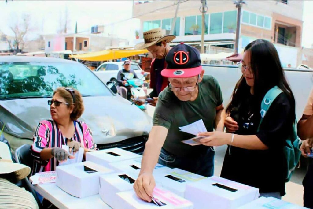 Con el objetivo de informar y preparar a la ciudadanía de cara a las elecciones del Poder Judicial del próximo 1 de junio, se llevó a cabo un simulacro de votación en por lo menos seis puntos estratégicos del municipio, entre ellos, la estación del Tren Suburbano en Lechería, a las afueras del Mercado del Carmen en Infonavit Norte, en el llamado Mercado Negro de Bosques de Xhala, frente al TESCI en La Perla, frente a la UAEM de Atlanta y frente a la Escuela Normal Preparatoria número 10.
