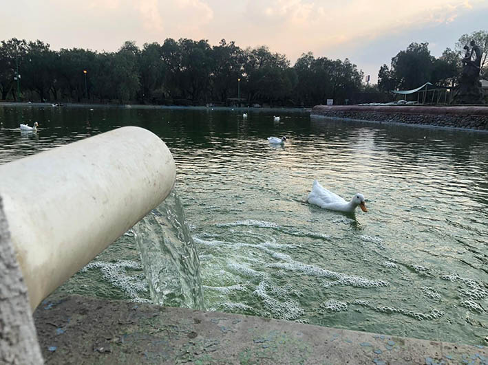 En estos momentos, dijo, ya se tiene un motor arreglado de los tres “aeradores” con los que cuenta el lago, y la energía que se utilizaba para bombear agua al lago del Parque de las Esculturas y al que se encuentra frente al Palacio Municipal “Lago Las Golondrinas”, ahora, se destinará para oxigenar el agua del parque.