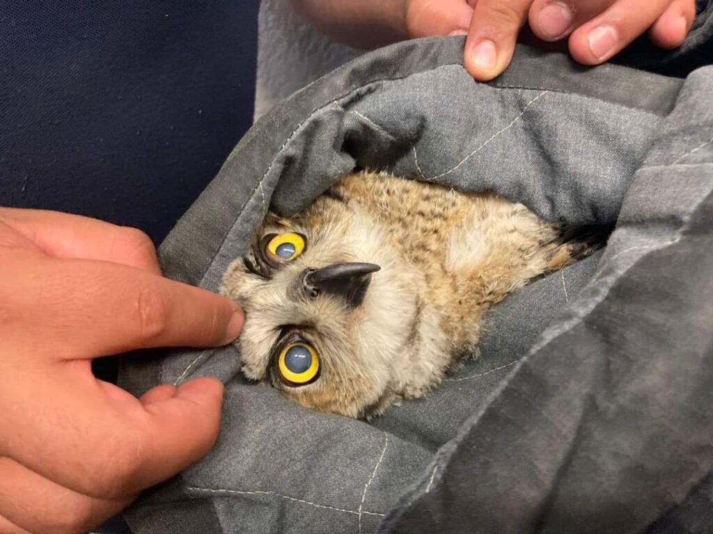 Rescatan búho de especie cornudo en la colonia Jardines del Alba de Cuautitlán Izcalli.