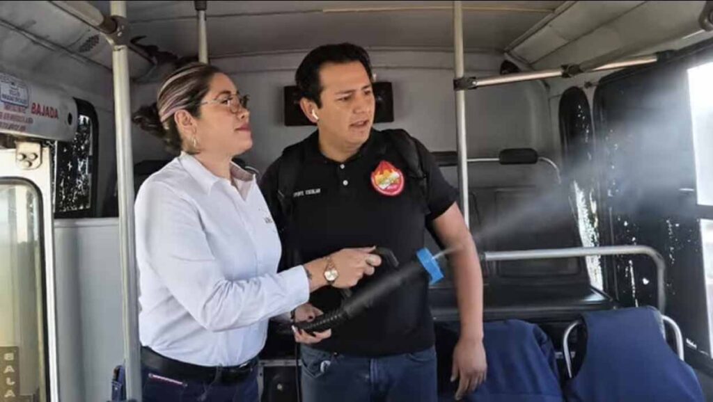 Más de 50 unidades del transporte escolar y transporte especializado fueron sanitizadas con protocolos avalados por la COFEPRIS, como medida preventiva ante el brote de sarampión.