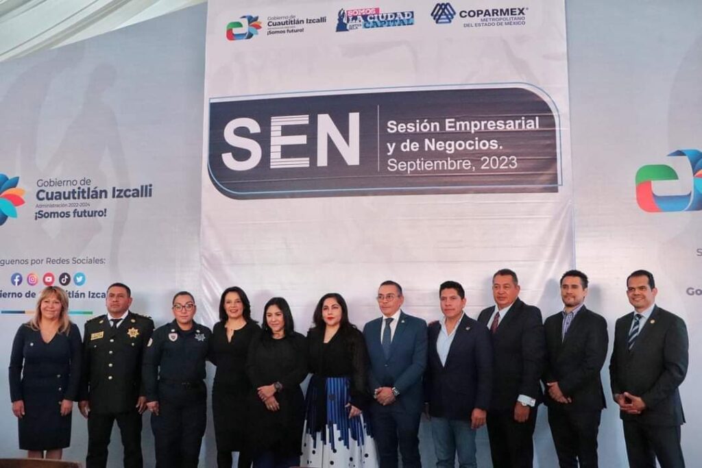 Con el objetivo de mejorar y fortalecer la comunicación con el sector empresarial de Cuautitlán Izcalli, la presidenta municipal, Karla Fiesco García, junto con la secretaria de Desarrollo Económico del Gobierno del Estado de México, Laura González Hernández, titulares de diversas áreas del Ayuntamiento, diputados y diputadas participaron en la novena Sesión Empresarial y de Negocios organizada por COPARMEX Metropolitano del Estado de México.