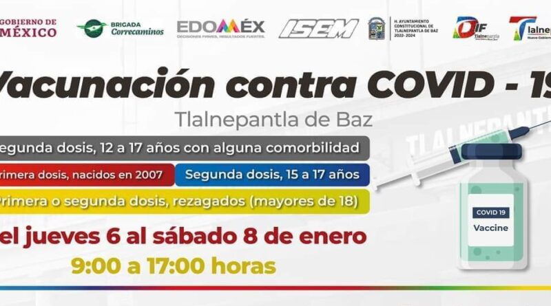 Si vives en #Tlalnepantla, del 6 al 8 de enero se realizará otra jornada de vacunación contra Covid19.