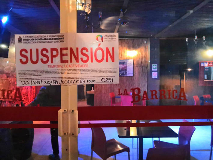 El gobierno de Atizapán de Zaragoza suspendió, por diversas irregularidades, 31 establecimientos que funcionaban como bares y “chelerías”, esto, en respuesta a diversas denuncias ciudadanas.