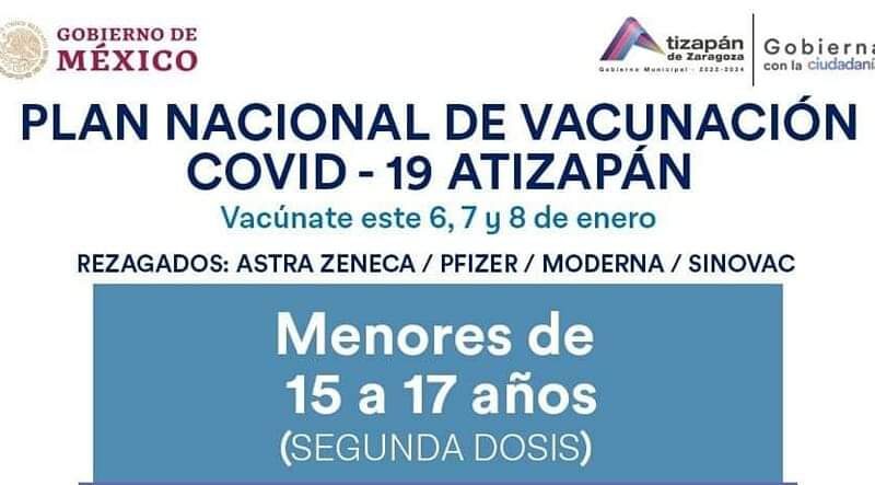 Vecino de #Atizapán, mañana comienza la vacunación de segunda dosis contra COVID-19 para menores de 15 a 17 años y también habrá para #REZAGADOS.