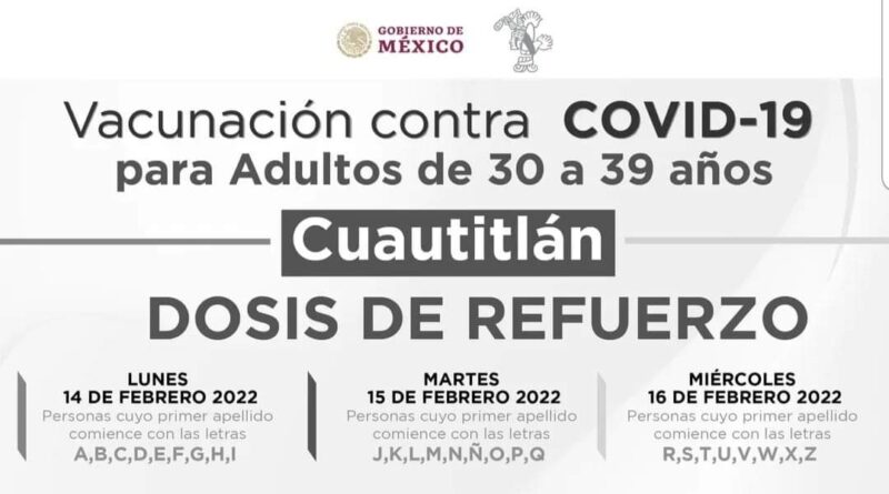 Vecinos de Cuautitlán recibirán refuerzo de la vacuna contra Covid19; es el turno del sector de 30 a 39 años.
